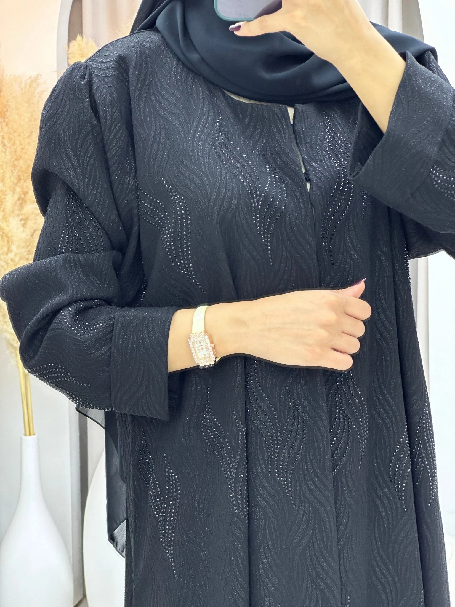 Step into timeless elegance with the C 0112 Black Beaded Abaya by CAS Abaya, a stunning piece that effortlessly blends luxury and sophistication. Crafted from premium fabric, this black abaya features intricate beadwork that catches the light, adding a touch of glamour to your ensemble. Its flowing silhouette ensures comfort while exuding grace, making it an essential choice for formal events or special occasions. This abaya embodies the artistry of Elegant Emirati abayas and exemplifies a Luxury Dubai abaya for women who appreciate refined fashion.