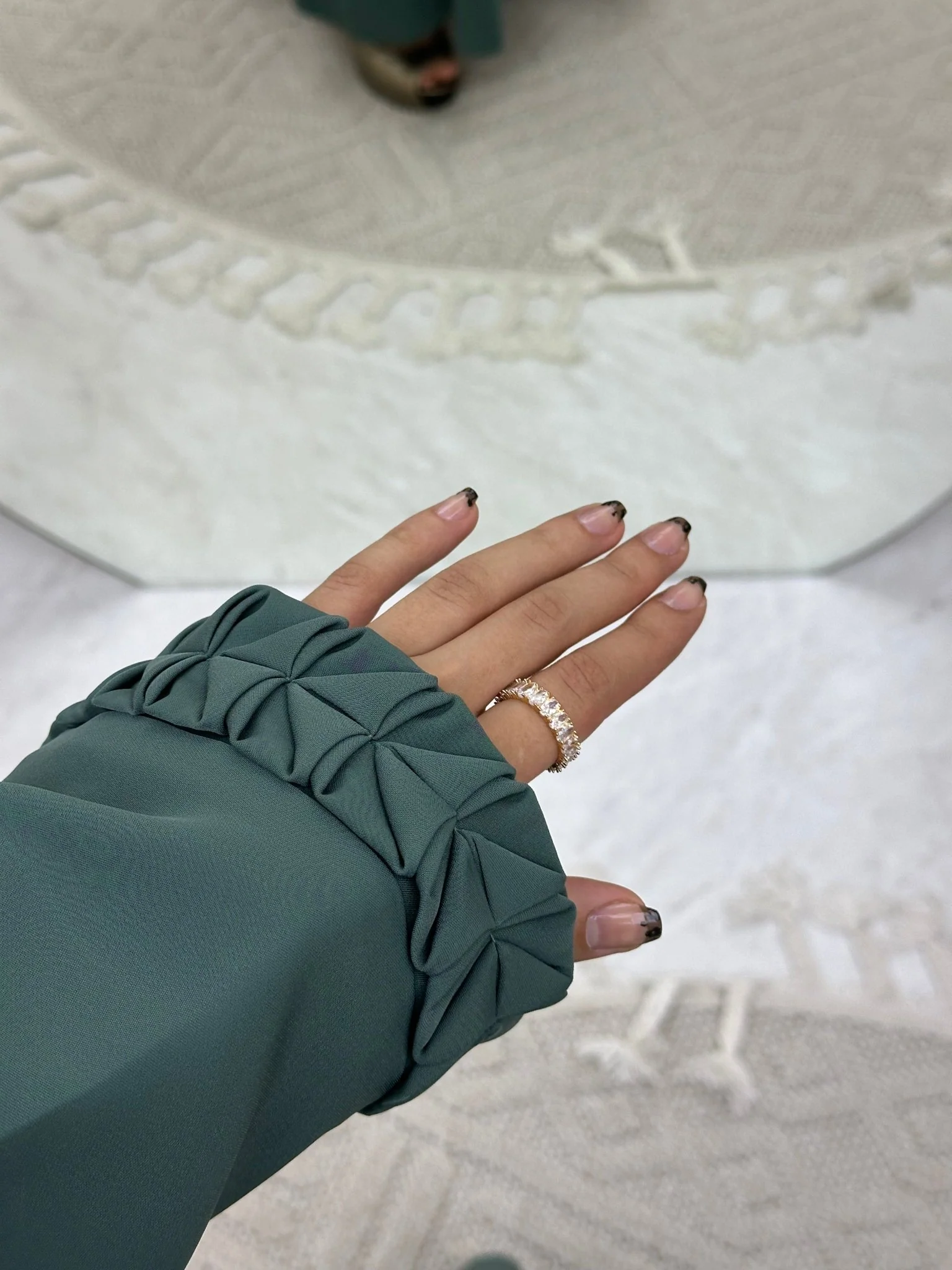 CAS Abaya presents the C 0172 Triangle Green Abaya, a distinctive Dubai abaya designed for women who appreciate modern geometry blended with classic elegance. Featuring refined triangle detailing, this elegant Emirati abaya adds a contemporary accent to its rich green silhouette. Crafted from premium fabric, it offers a graceful drape and comfortable wear, making it suitable for daytime occasions, evening gatherings, and stylish moments across the UAE.