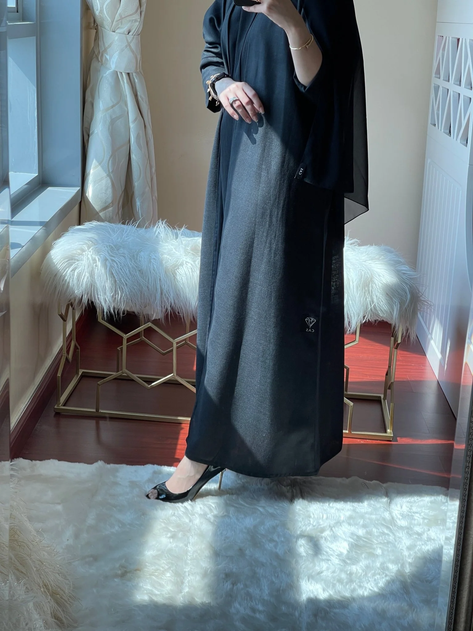 Basic ‘22 Collection: Black linen abaya set with straight sleeves.