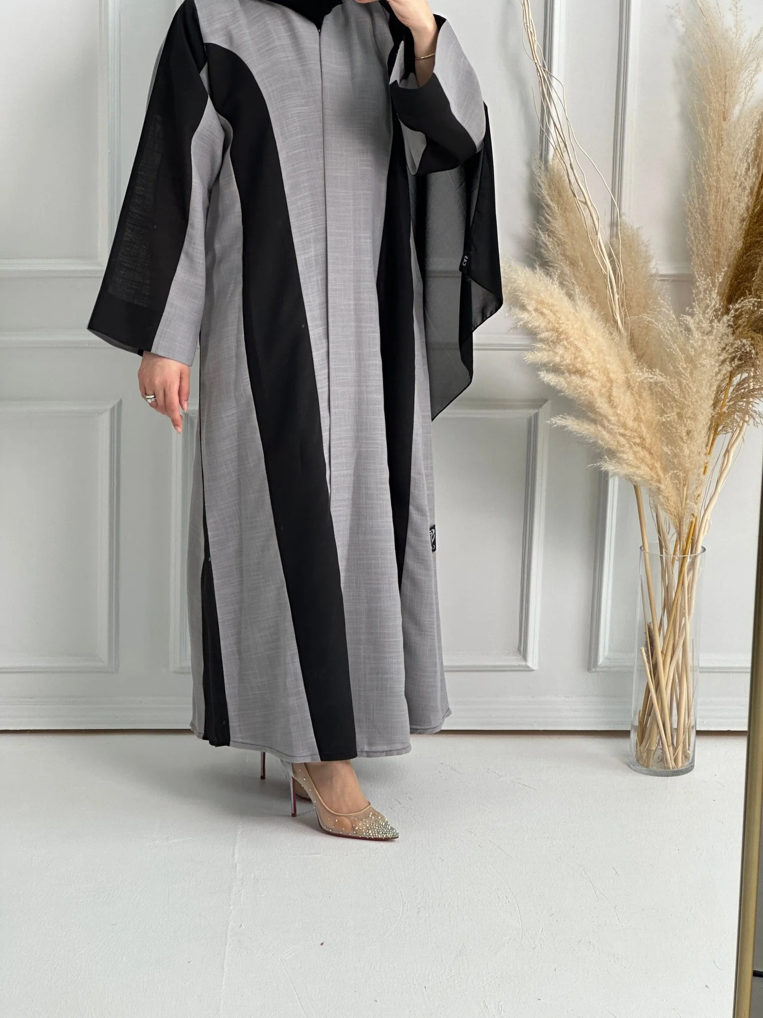 Introducing the C-Black-Grey-Summer-Linen-Abaya, a stunning dubai abaya crafted from exquisite 100% linen. This bespoke masterpiece embodies the perfect fusion of traditional elegance and contemporary sophistication, designed exclusively for the discerning woman who values both modesty and refined style.