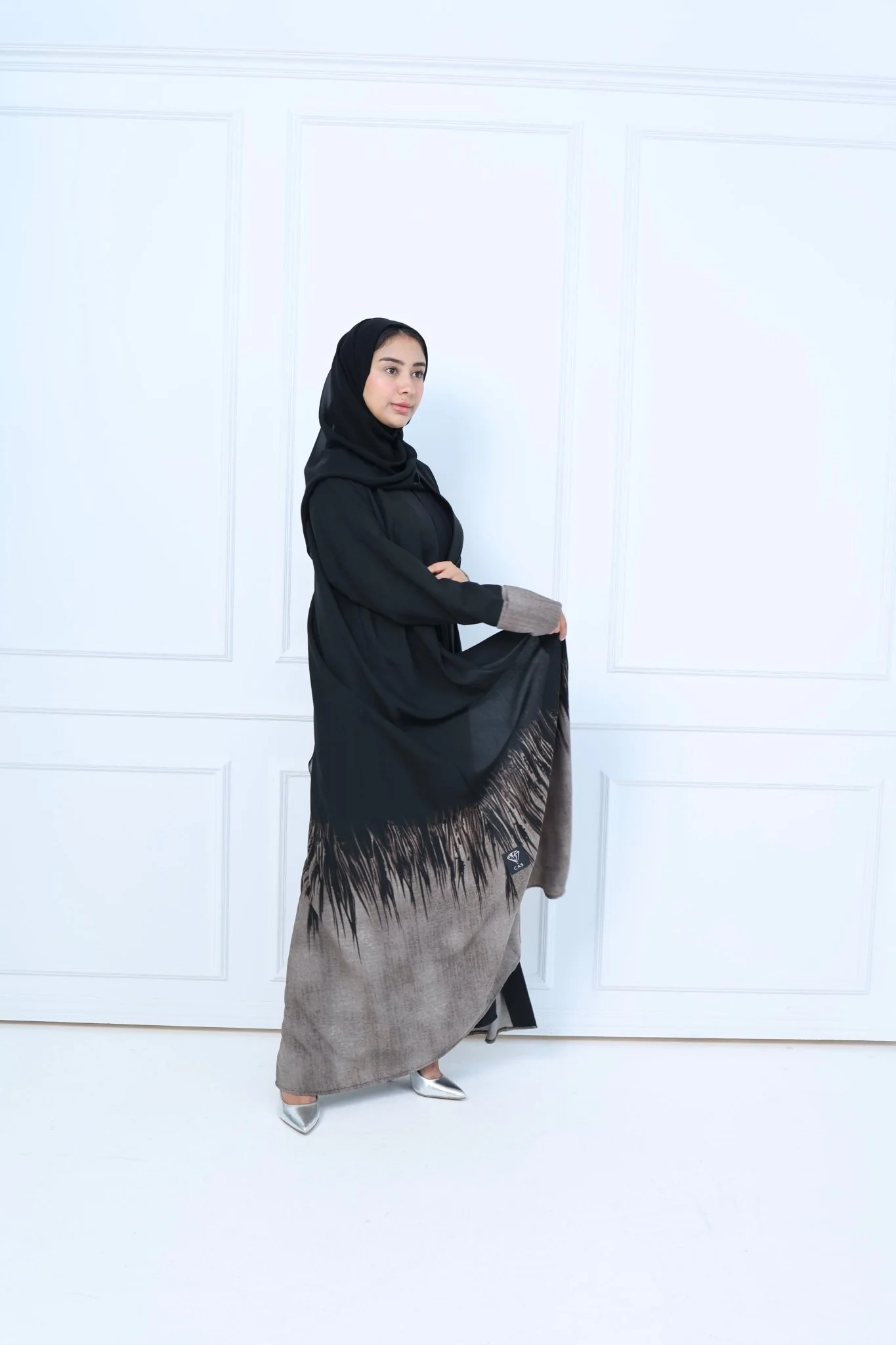 Ombre black/beige straight-cut abaya with contrasting cuffed sleeves.