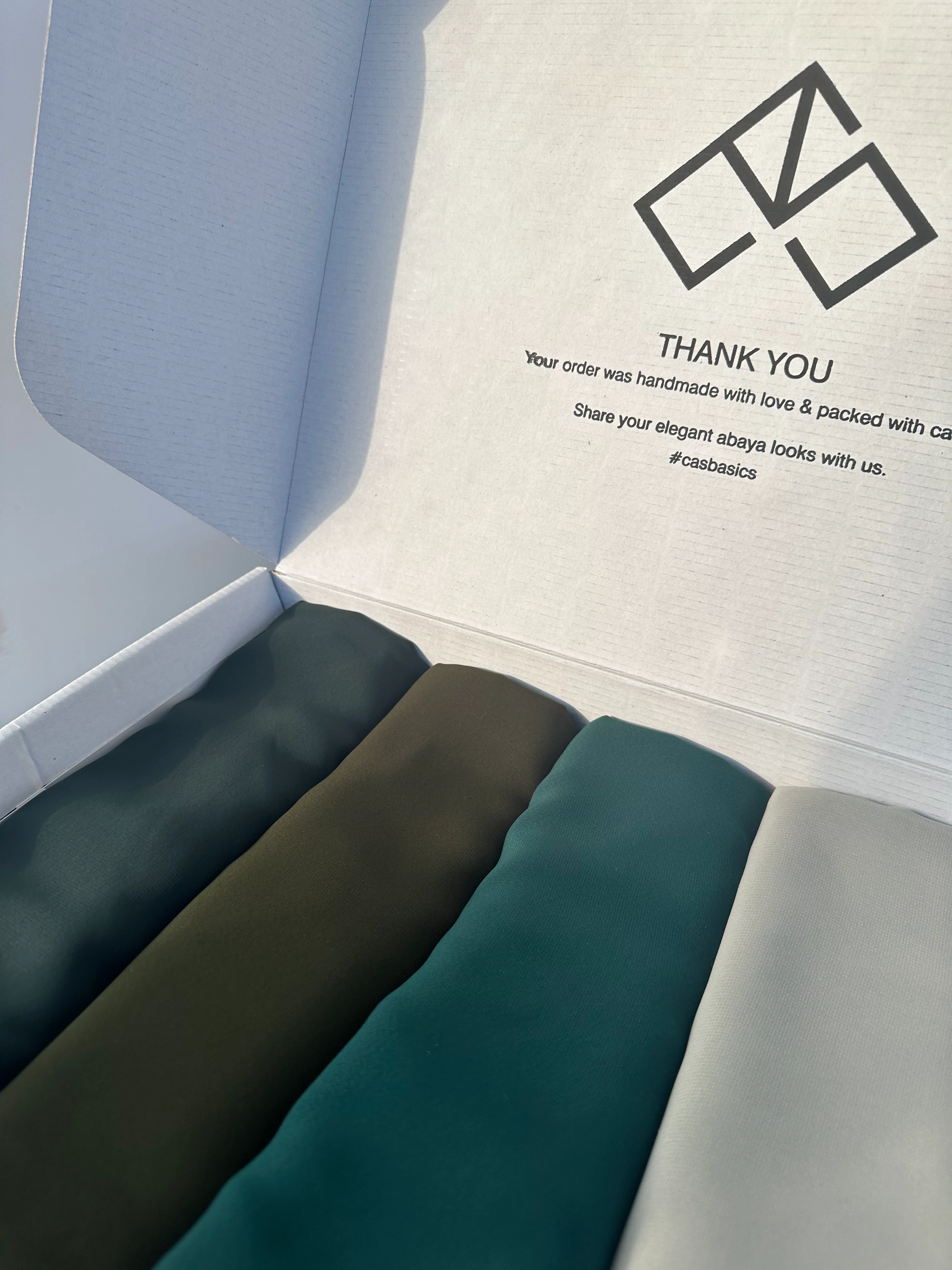 Dark Green Sheila Box Exquisitely crafted from lavish Duja Allail fabric, these sheilas are expertly designed to remain in position, while their velvety texture gives off a luxurious feel.