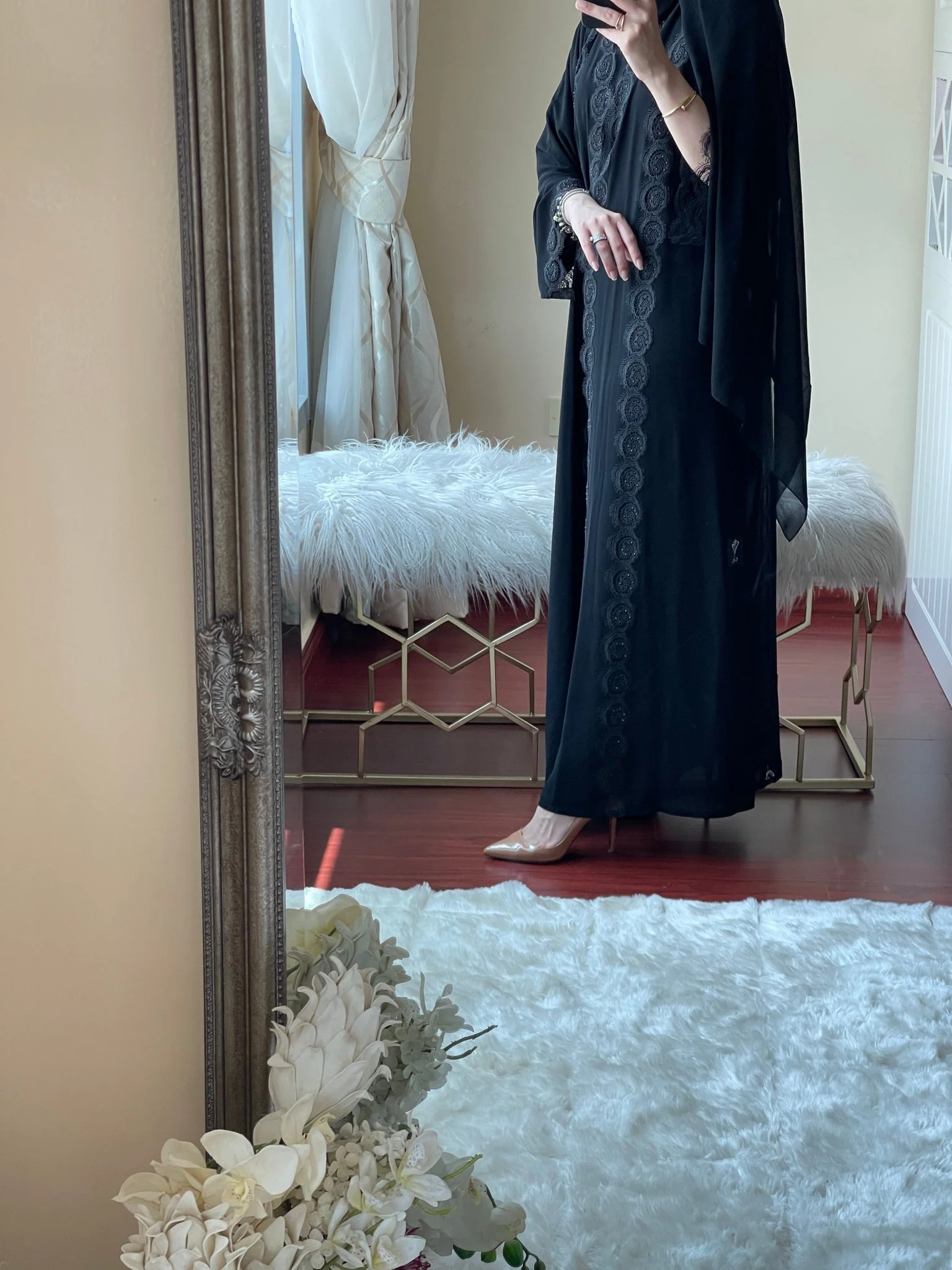 Buttons can be added to the abaya. Please type “with buttons” in the comments box.