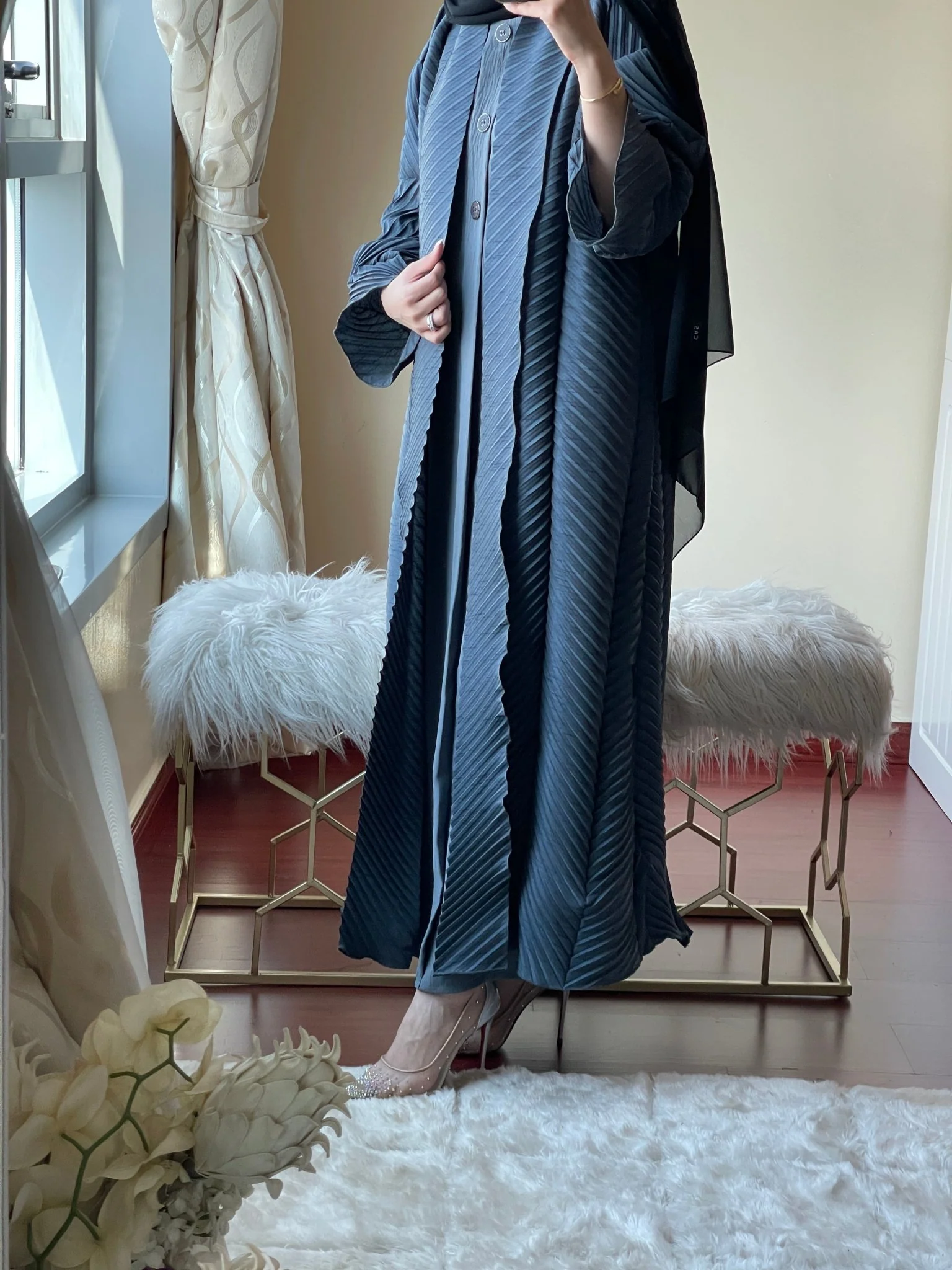 Introducing the C-Grey-Pleated-Abaya-57, a stunning dubai abaya crafted from exquisite jacquard (lightweight, summer friendly fabric). This bespoke masterpiece embodies the perfect fusion of traditional elegance and contemporary sophistication, designed exclusively for the discerning woman who values both modesty and refined style.