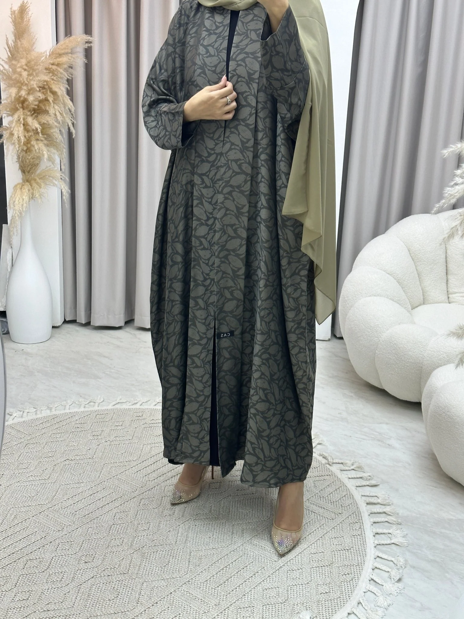 Exquisitely crafted from sophisticated jacquard fabric, this timeless abaya is adorned with a classic leaf print and shaped with a sublime bisht style.