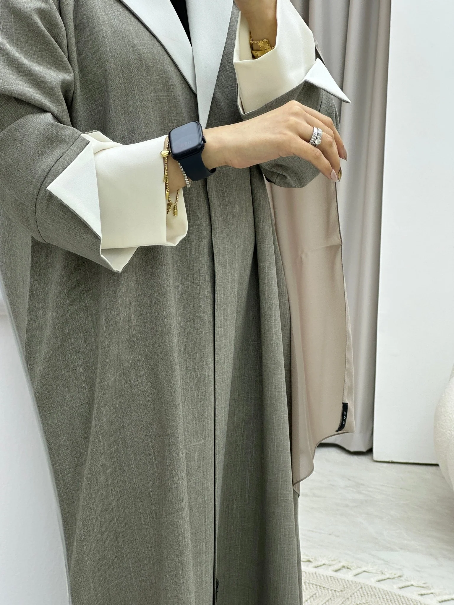 This sophisticated winter abaya offers a timeless coat-style design, complete with an oversized collar, cuffed sleeves, and oversized pockets, as well as side slits to create a sleek and alluring look.