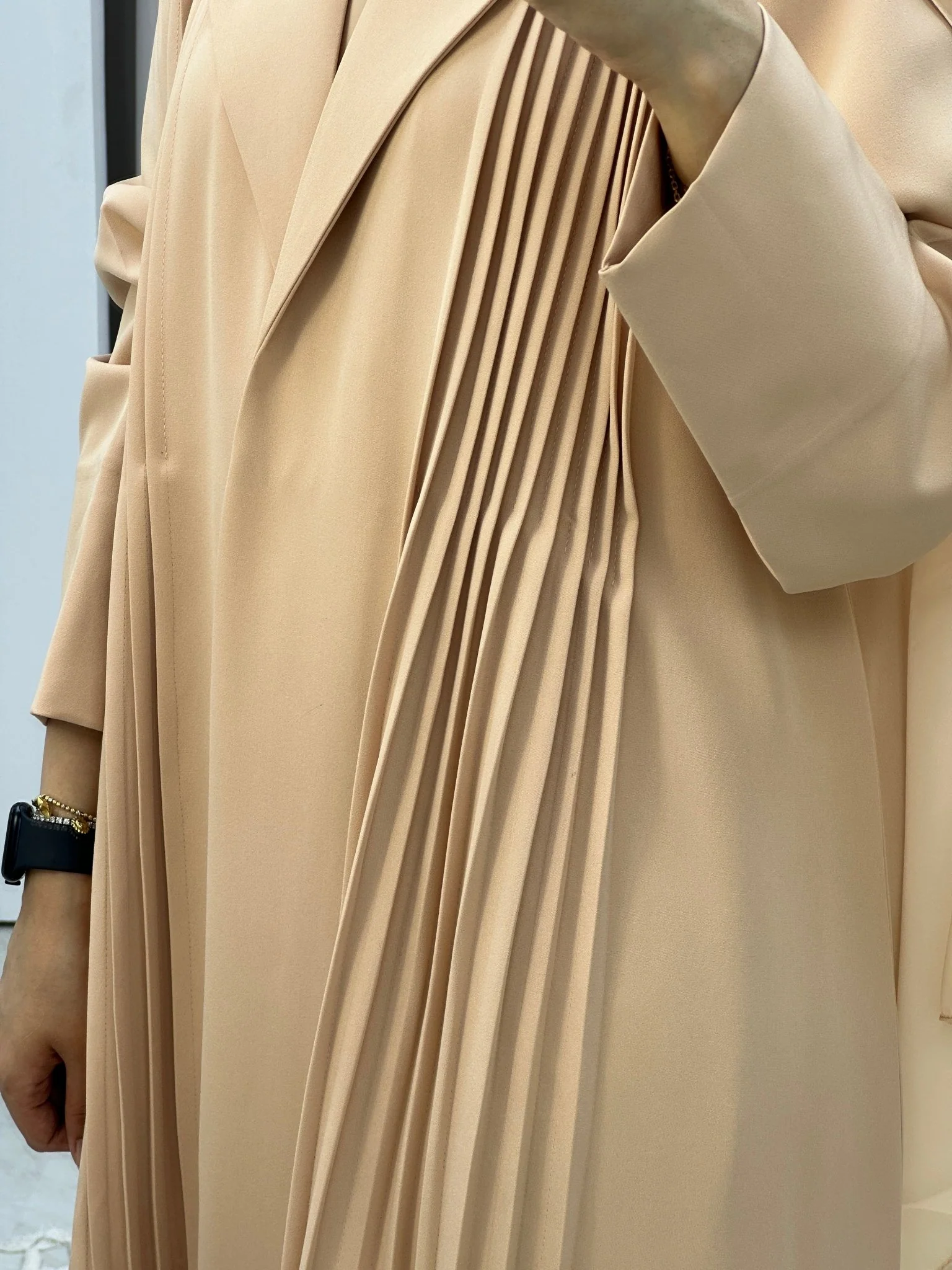 C Pleated Beige Abaya Coat