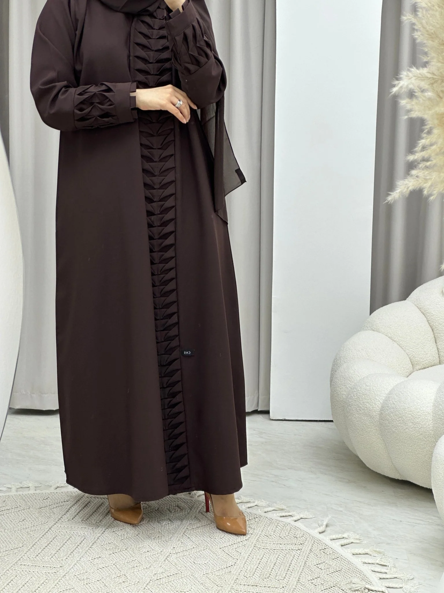 C Triangle Pleats Brown Abaya